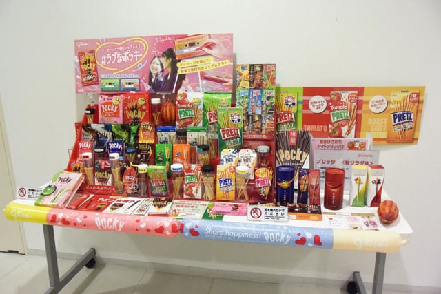 - この工場では、ポッキーは7万個、プリッツは5万5千個が生産されている。