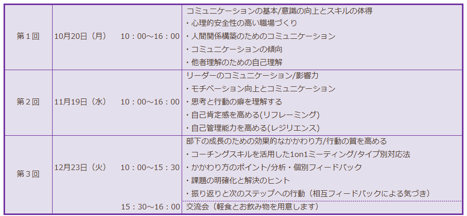 | 参加対象 | 中堅社員・中間管理職の方 |
