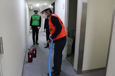 神奈川中小企業センタービルでも年2回防災訓練を行っています。2月には今年度2回目の訓練を実施しました。