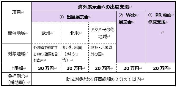 ※各助成事業:①出展展示会 ②Web展示会 ③PR動画作成支援