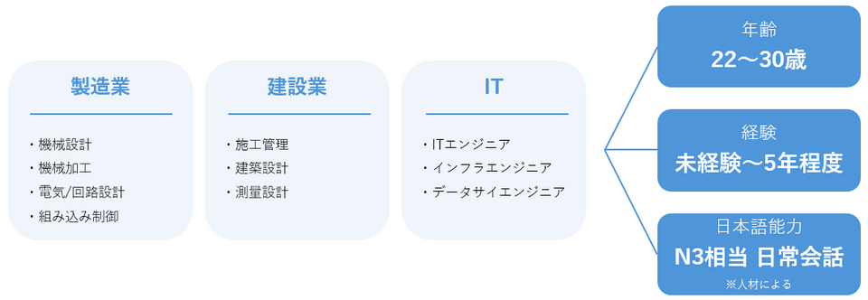 50~100名想定(在留資格「技術・人文知識・国際業務」に該当する者)